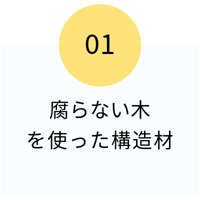 木造住宅の弱点である木材の腐れ・シロアリからの守り、新築時を同じ耐震強度を維持できる構造システムです。構造材が劣化しなければ、初期の耐震性能を長期間維持でき、何年たっても安心できる家づくりが可能です。