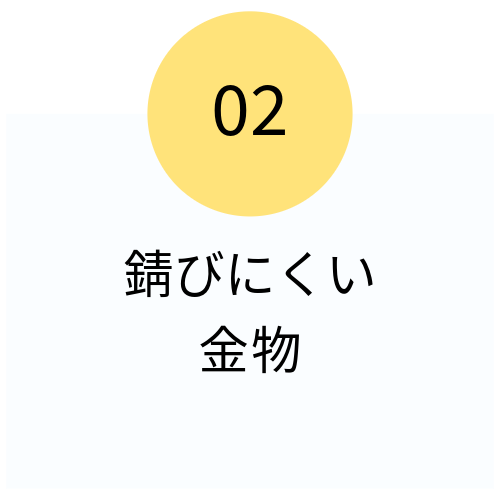 住宅の構造をつなぎ合わせている金物も、さびにくい表面加工を施した、『デュラルコート』と呼ばれる金物を使用します。