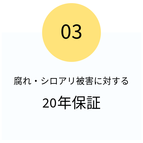 通常のシロアリ保証には珍しい、木材の腐れ保証もついています。